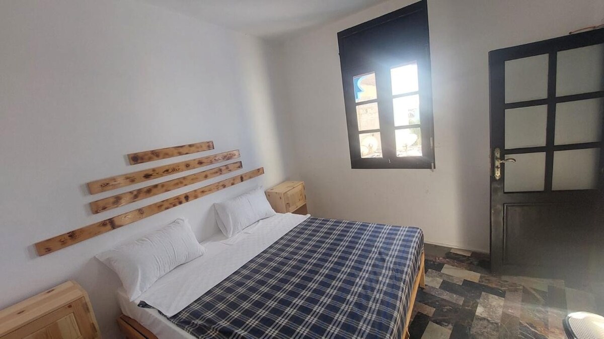 Clementine Suite is perfect for a family stay. It has a huge matrimonial bed and two single beds. The windows overlook on the Cathedral point with its famous surf spots and Imsouane bay from the other side. Downstairs there is an equipped shared kitchen accessible for all our guests, and on the top we have a panoramic terrace with an area with some sofa to hang out. We serve breakfasts from 8 AM until 10:30 AM and it's included in the price.