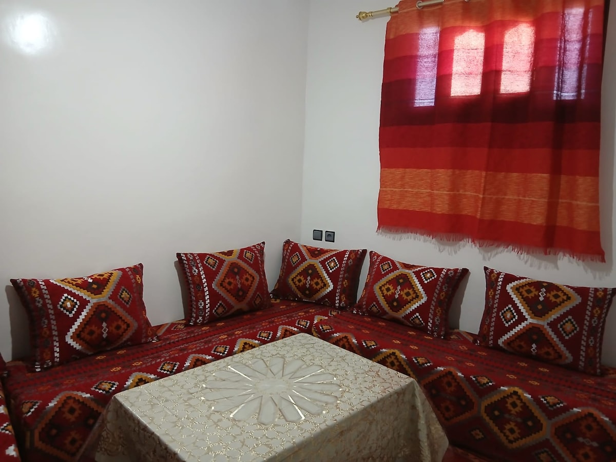 Apartment consisting of two bedrooms including a master suite. The accommodation can accommodate up to five people maximum, baby bed available to guests. The apartment is located on Avenue Moulay Youceff parallel to the Avenue des Phares. It is 400 m from Carrefour Talborjt and 1.5 km from the El Haid souk. The accommodation is fully equipped. You can park in front of the accommodation safely, very well served by taxi and bus, small restaurant and grocery store next to the accommodation