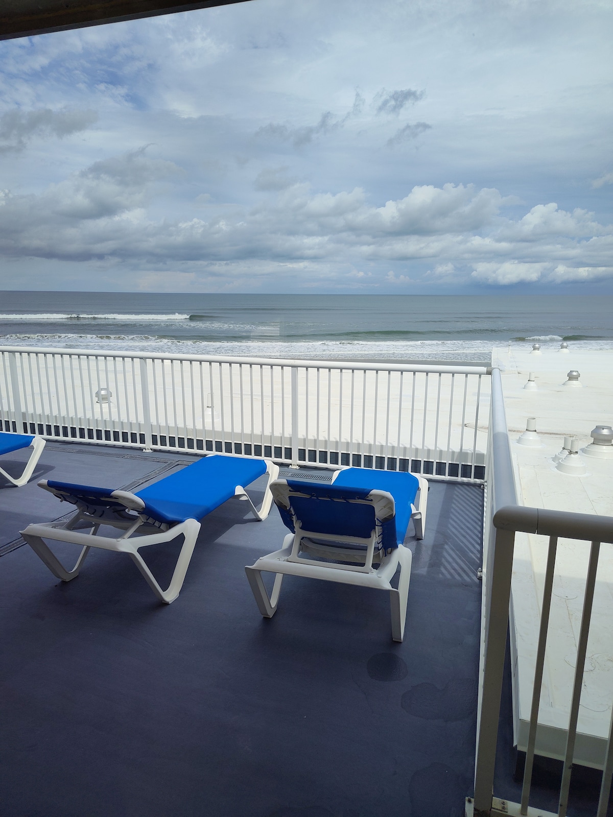 Wonderful direct oceanfront condo steps from the beach. Sit on your own private balcony listening to the waves while enjoying your favorite beverage. We offer a new queen sized pillow top mattress ,rollaway bed and recliner sofa. We also have a new Samsung 55"smart TV with full cable lineup and 100 mps WIFI. The kitchen is fully equipped ,but if you prefer not to cook Adams Egg restaurant is located right on the property