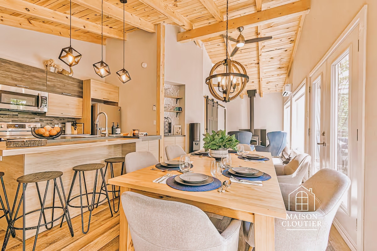 Escape just 1h from Montreal! Casa Verde Chalet in the Laurentians features a private hot tub, exclusive access to 2 lakes (beach 3 min walk), free kayaks & paddle board, large deck with BBQ, and a fully equipped kitchen. Perfect for 6 guests (4 adults max.), it’s an ideal family or friends’ getaway in a peaceful natural setting. 2 floors, 3 cozy bedrooms, WiFi, convenience store 10 min away, Lachute 20 min. Relax, enjoy lake activities, and recharge at Casa Verde! CITQ: 305851