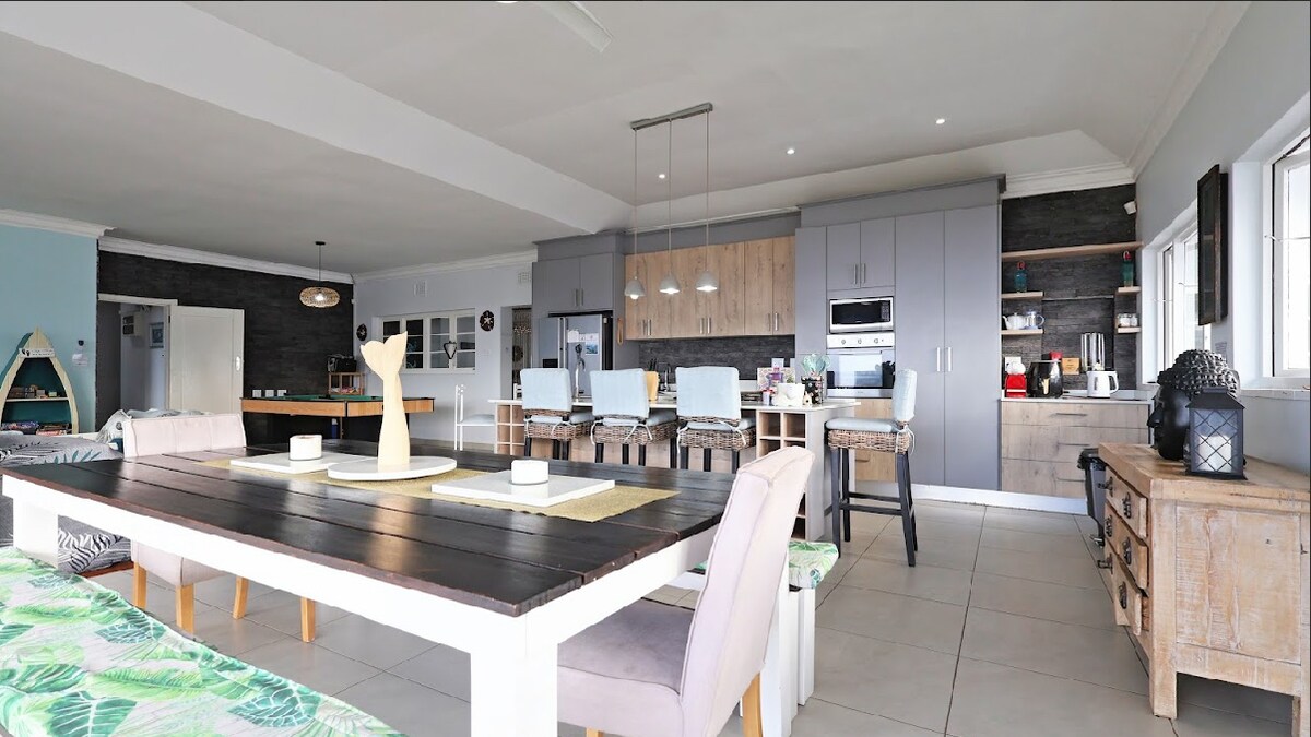 Bring the whole family to this great place with lots of room. This is the ideal holiday for a multi generational family. Fully kitted with an inverter and solar panels, as well as 3 x 5,000 litre jojo tanks filled with council water, you will never be without electricity or water. We have a beautiful swimming pool with sea views for days. Ramsgate main blue flag beach & Waffle House are just a 1km walk, taking the stone steps at the end of our street. Complimentary cleaning twice weekly.