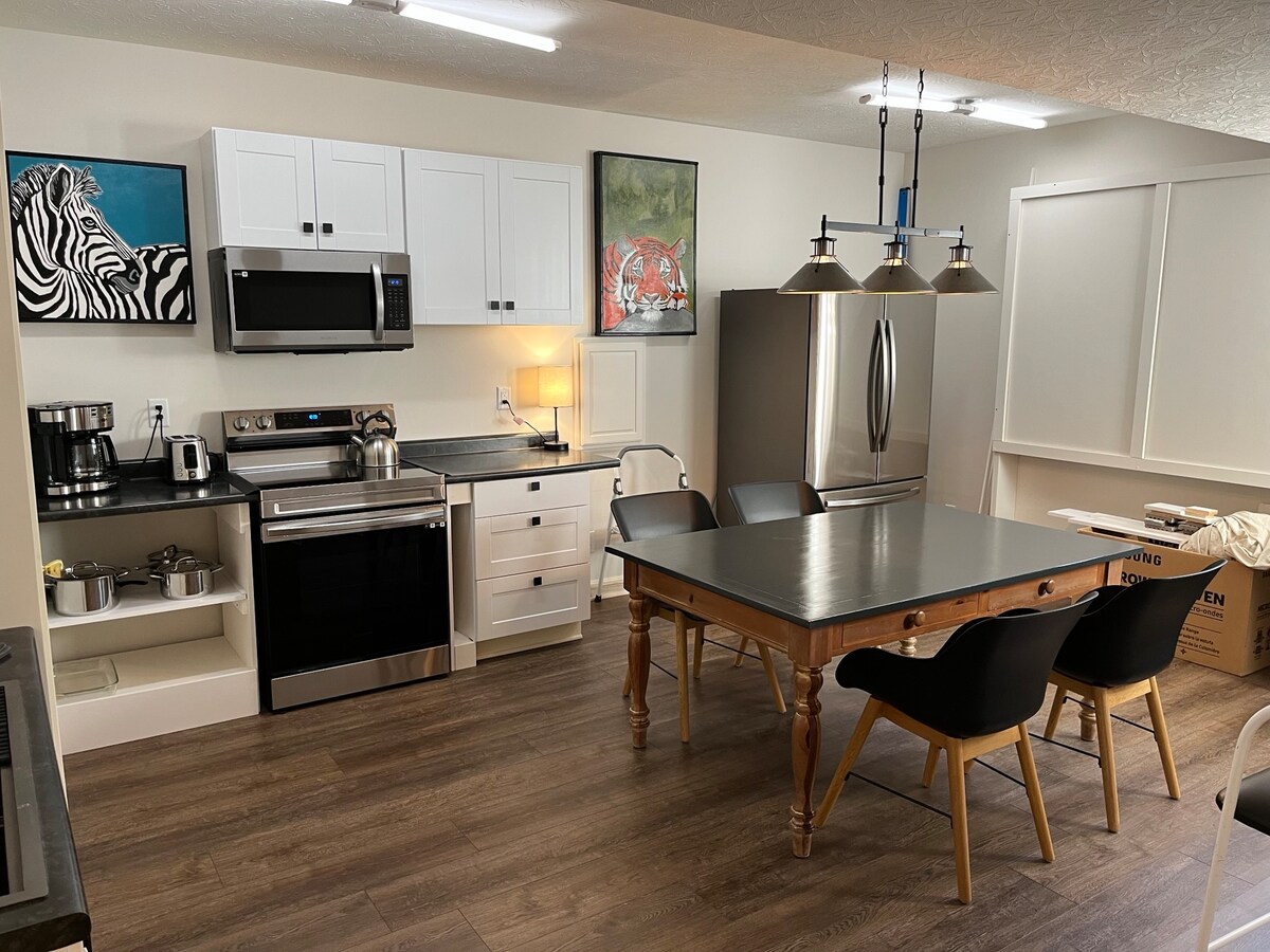 Guests will have their own entrance and is closed off from the rest of the house. It is a 2 room space (250sf) Has a queen memory foam bed . A bathroom and a kitchenette in the next room (with microwave, coffee maker, mini fridge, panini press) fold down couch for 3rd guest You will get much more from us than a hotel room and much cheaper! Pet fees $20 per stay $5 guest fee per day after 2.