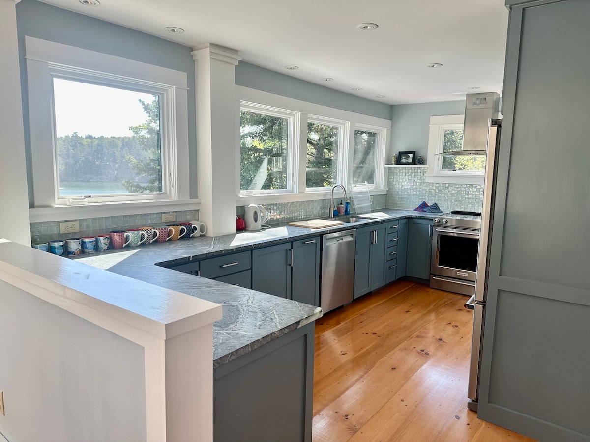 Harborside on Main is a lovingly restored, traditional coastal New Englander cottage located on the hillside above beautiful Southwest Harbor, just 1 mile from Quietside Acadia’s best oceanfront hiking trails. Steps outside the maritime village of SW Harbor with semi-private ocean access, seaglass beach, dock, firepit, and a short walk to all village amenities: the town pier, local bars, restaurants with live outdoor music overlooking the marina, & a private charter on a wooden Friendship sloop.