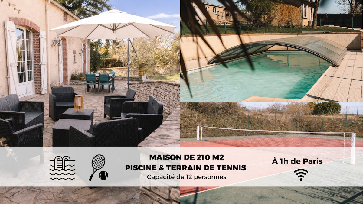 Maison avec piscine et tennis à 1h de Paris 12pers