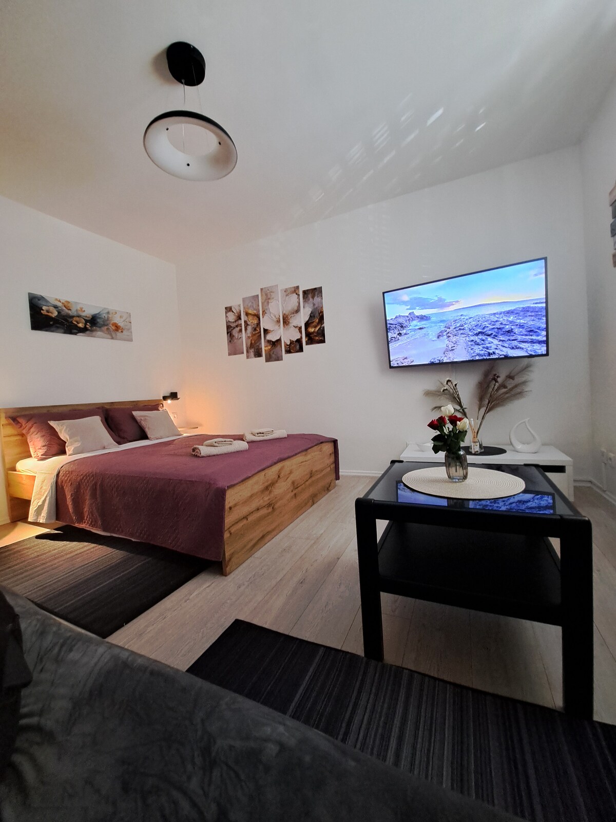 Studio Apartment La Fe is located in a peaceful neighborhood of the tourist town Srebreno, on the third floor of a residential building with private free parking nearby. The apartment is 450m from Srebreno beach, 800m from Kupari beach, and 1km from Mlini beach. This studio offers a fully equipped kitchen and a bathroom with free toiletries and a hairdryer. The studio features a spacious bed measuring 180x200 cm. The property is situated in close proximity to a shopping center and a bus station.