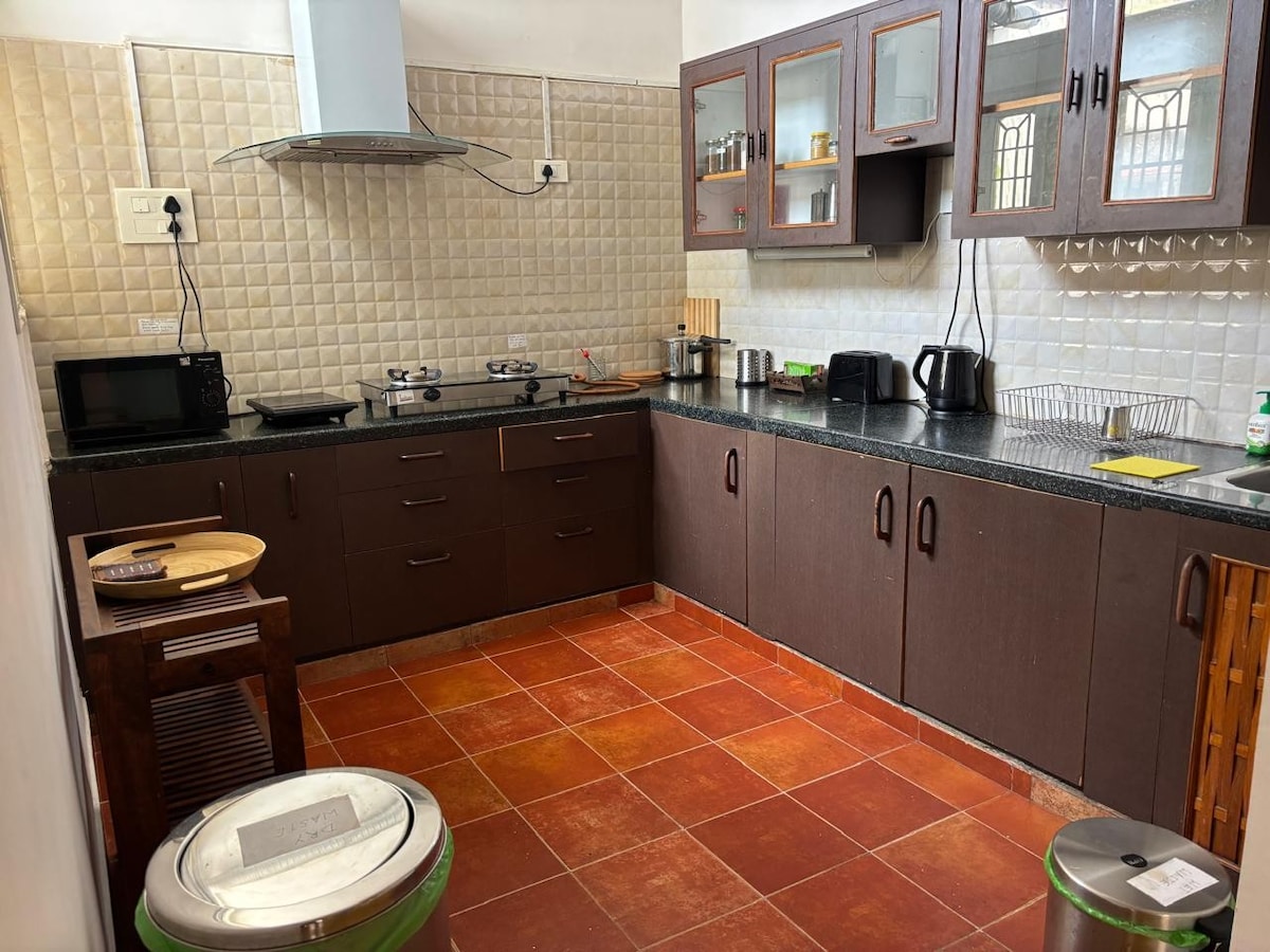 Located in the heart of Gokulam, Mysuru, this three bedroom independent house was our family home before we shifted to our organic farm. The large common spaces, the warmth of the Athangudi tiles and the proximity of restaurants, commerce, yoga centers and services make it an ideal space for large families or groups of friends / colleagues. All the bedrooms are Air Conditioned and have an attached bathroom. While being very well connected, the house is tucked away in a tranquil neighbourhood.