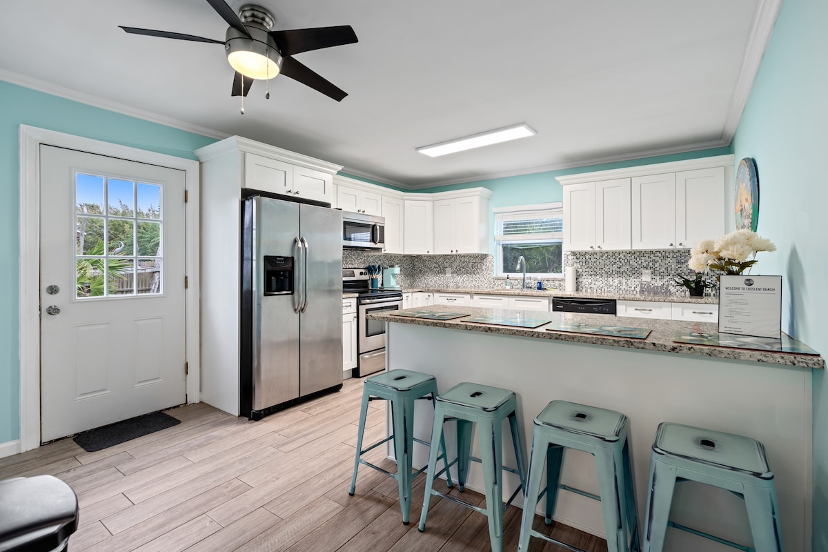 In St Augustine's historic neighborhood. Completely modernized, but we kept the old charm. New everything. Included amenities bikes, BBQ, Fire pit, outdoor lounge furniture, private patio, laundry inside, Nespresso maker, coffee included, soaps and shampoos, beach essentials. Everything you need is here. Just bring your suit case. 5-10 minute walk to the center of town. Catch the trolly at the end of the street. Buy your tickets here and receive a discount. Welcome to a fun memorable stay.