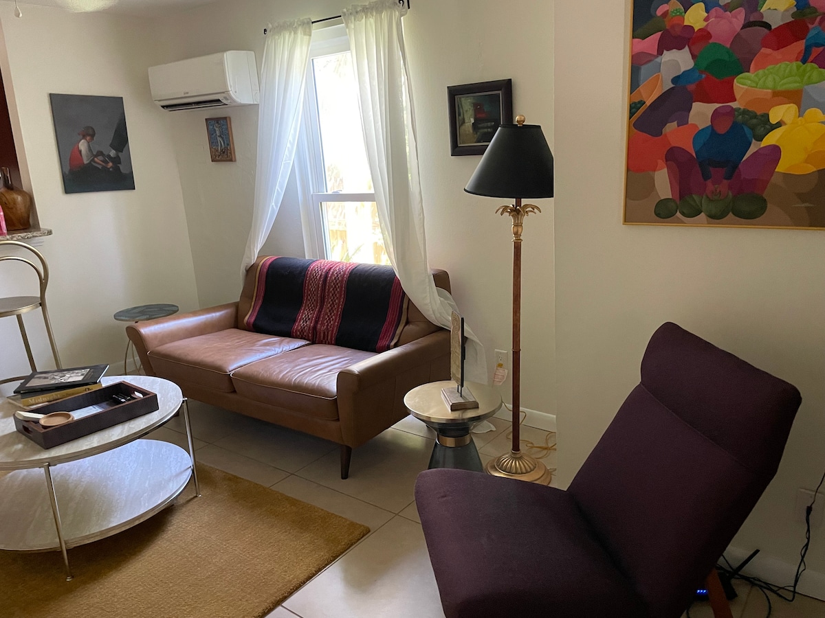 This uniquely decorated guest house is a private oasis with a lovely, private patio. The house is decorated with Latin American art from the owner's collection & travels. Only 11 blocks to downtown and very close to grocery stores, art galleries and all the night light life St. Pete offers. The home has a full kitchen and a very comfortable bedroom for one or two people. A perfect location for those that want to experience a comfortable and relaxing place. Only 12 block walk to Tropicana.
