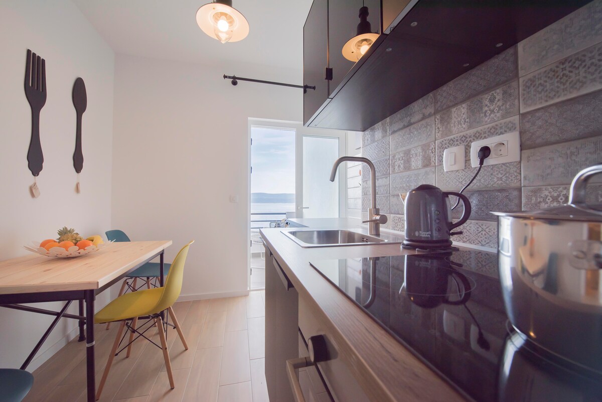 Apartment "Aqua 2" it is located in a quiet place, it is decorated in such a way that it exudes warmth and a nice atmosphere. It is intended for 2 people, but it offers the possibility for couple with baby or child and a dog to stay in it. It has a spacious terrace with an incredible view of the sea, where our guests like to enjoy their first morning coffee and breakfast. The pebbly beach and the apartment are directly connected by stairs, which provides a special atmosphere.