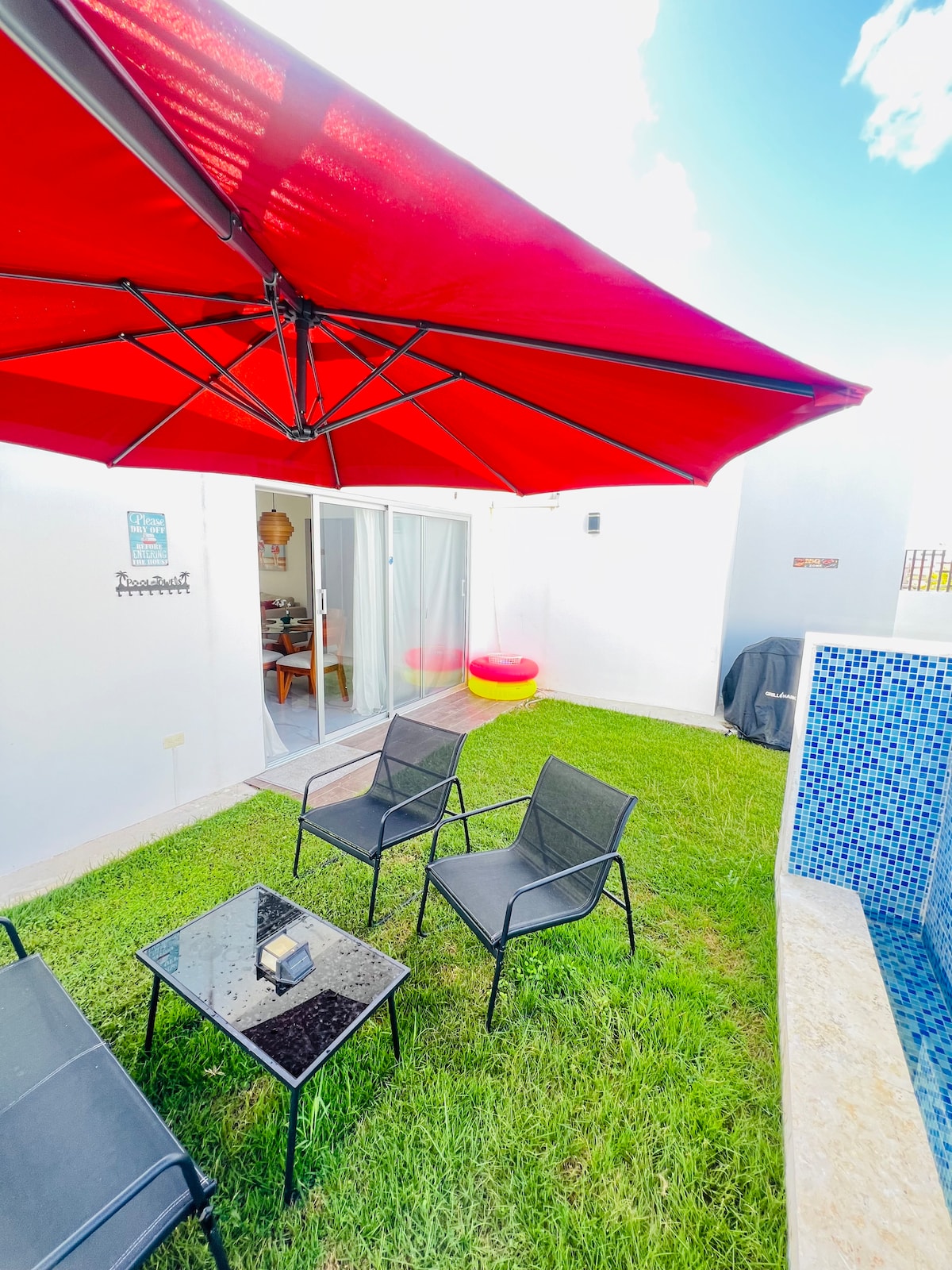 Welcome to your ideal spacious 4 bedrooms townhouse in a quiet green neighborhood in Bavaro, Punta Cana. Villa comes fully equipped for your comfortable vacation. Enjoy your family time together relaxing on the private beach or in the pool with beach chairs. Also free parking is available. Enjoy your vacation in the most centric location just steps of everything (restaurants, bars, minimarkets, bus stop, taxi).