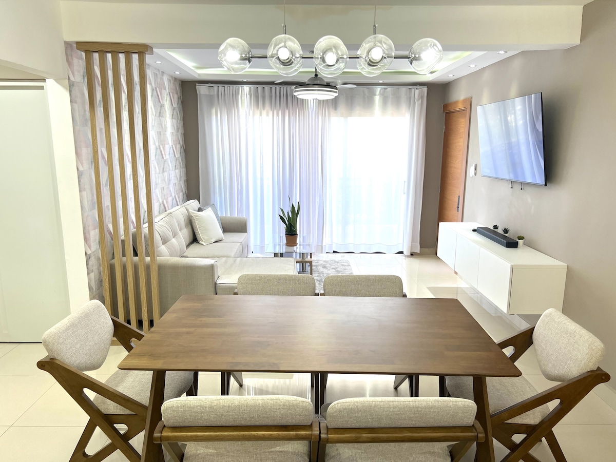 Brand-new apartment offering you exclusive access to a private rooftop paradise with panoramic views of the Puerto Plata hills from our Picuzzy. Dive into relaxation in the pristine pool, a hidden gem for our guests, and the sun-kissed Playa Dorada beach is 5 minutes away. Inside, you'll discover three spacious bedrooms, each equipped with refreshing air conditioning to ensure your comfort. The expansive living room is your cozy haven for memorable movie nights and quality time with loved ones.