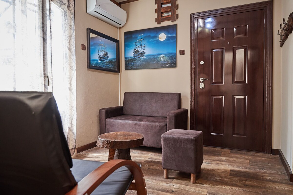 The apartment is full renovated a few months ago and everything is brand new. In the bedroom there is a large comfortable double bed and one big sofa bed in the living room. All in discreet led light. In the kitchen you can enjoy a modern flat-screen cooker, oven, refrigerator with freezer, dishwasher and washing machine and a large bar table. The bathroom is glazed with marble ceramics, it is very compact and clean. The bathroom is equipped with a hairdryer, towels, hygiene sets.