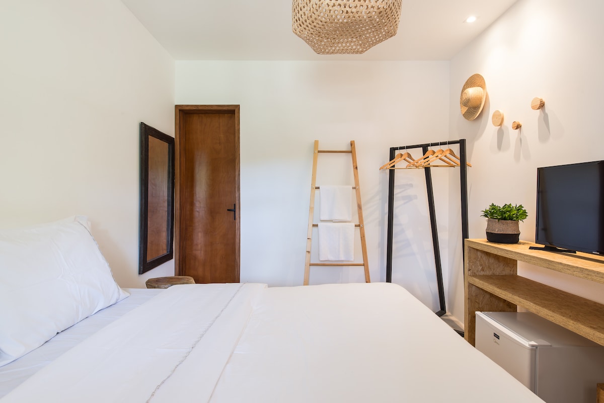 🦎 Quarto Subterrâneo – Simples, Confortável e com o Clima Perfeito pra Descansar em Noronha! 🌿 O ambiente é naturalmente mais fresco, e ainda conta com ar-condicionado, frigobar e banheiro privativo, tudo funcionando direitinho pra te dar o suporte que você precisa depois de um dia explorando as belezas de Noronha. ✨ Você aproveita as mesmas comodidades dos quartos de cima — como o café da manhã preparado com carinho, limpeza diária e atenção da nossa equipe — por um valor bem mais em conta.