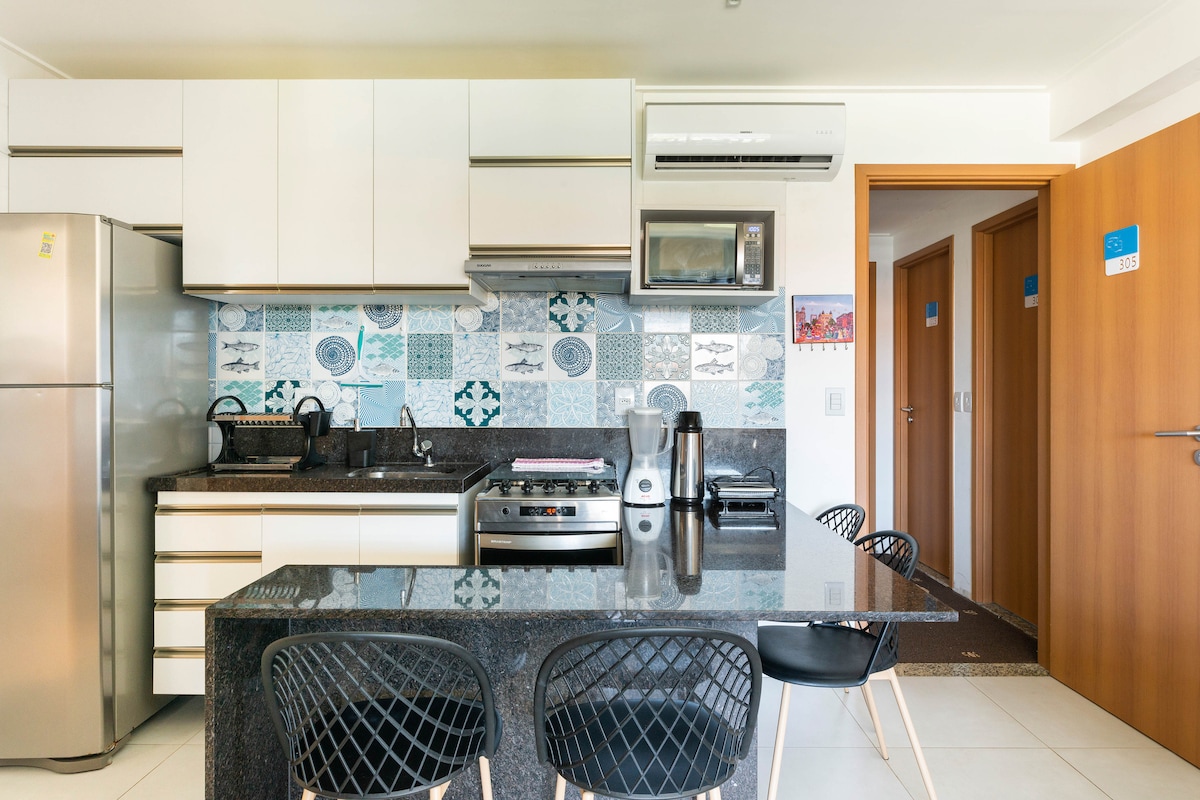 High standard flat decor designed for short and long stays. Perfect for couples, people traveling alone for leisure/work or family. Apartment 100 meters from the sea of Cabo Branco, on a quiet street, near a pharmacy, restaurant, supermarket, bakery, fitness center and restaurants, in addition to Cabo Branco Park, a privileged location. Best cost-benefit for those who want to get to know one of the most beautiful beaches in the Northeast.