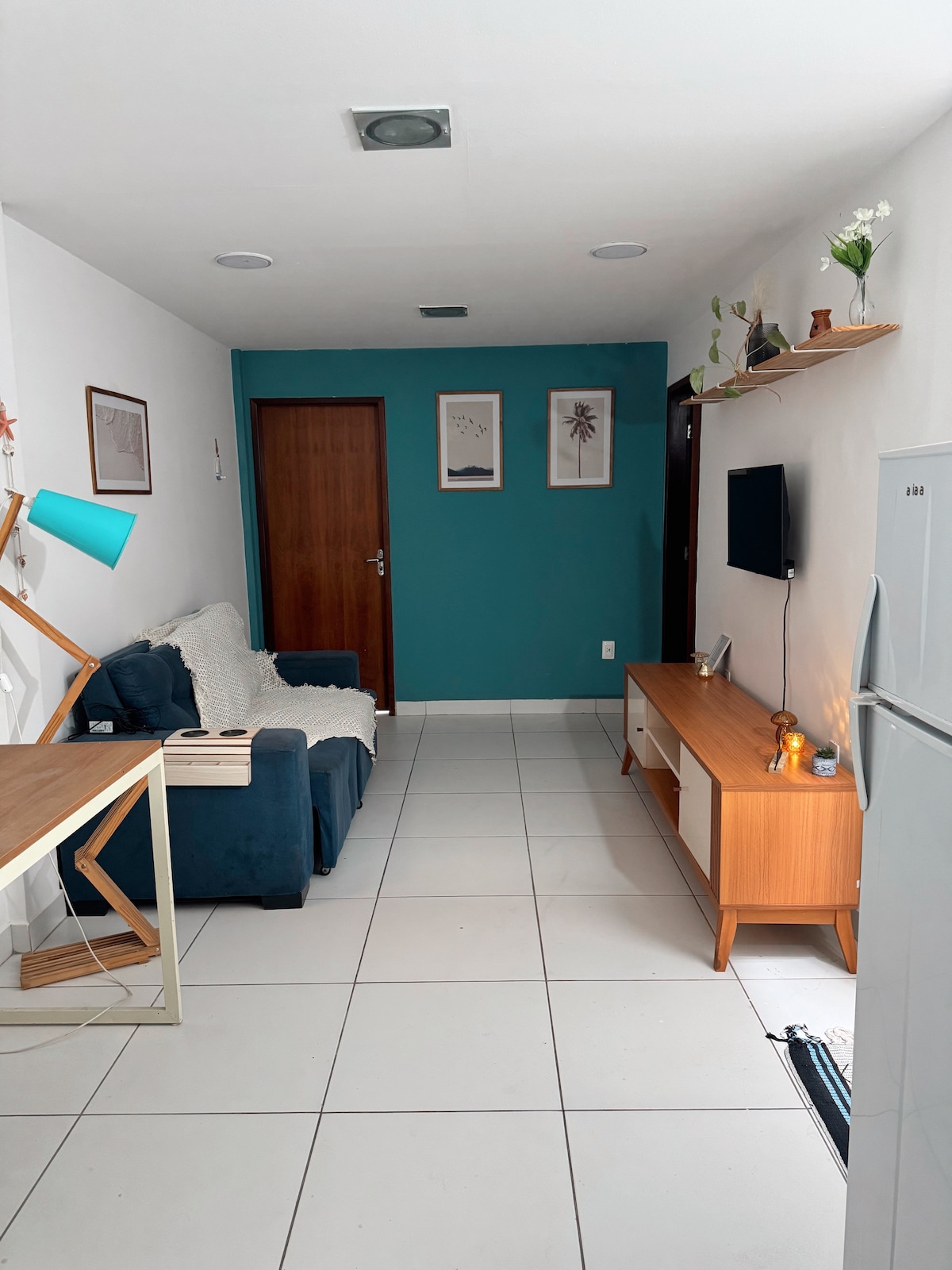 Apartment in a gated community, close to shopping malls and the Atlântico City convention center. The entire apartment is available. Full kitchen. Washing machine. Available: 01 suite with double bed; 01 bedroom with single bed and auxiliary bed. Living room integrated into the kitchen. All rooms with air-conditioning. Swimming pool in the condominium.