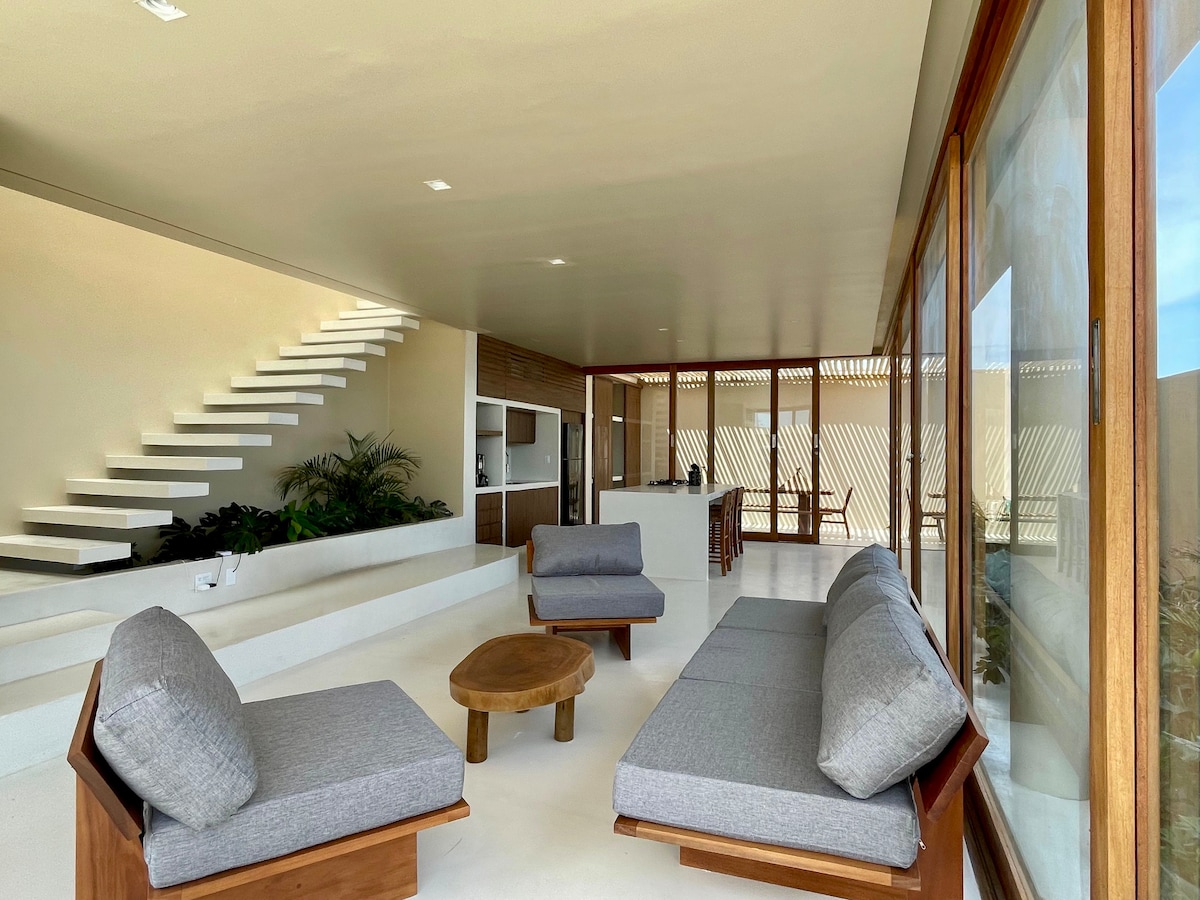 The luxury of a small space where nature, tranquility and regional materials blend into a surprising location where the wind is omnipresent. Beachfront house with feet in the sand, located in the kite point, 300 meters from Rancho do Kite, next to the Balcon restaurant and 300 meters from the main street, on a paved street. Composed of 4 en-suites, kitchen, living room, dining room, rooftop with Jacuzzi and barbecue grill. It also has a lawn and compressor to inflate the kites.