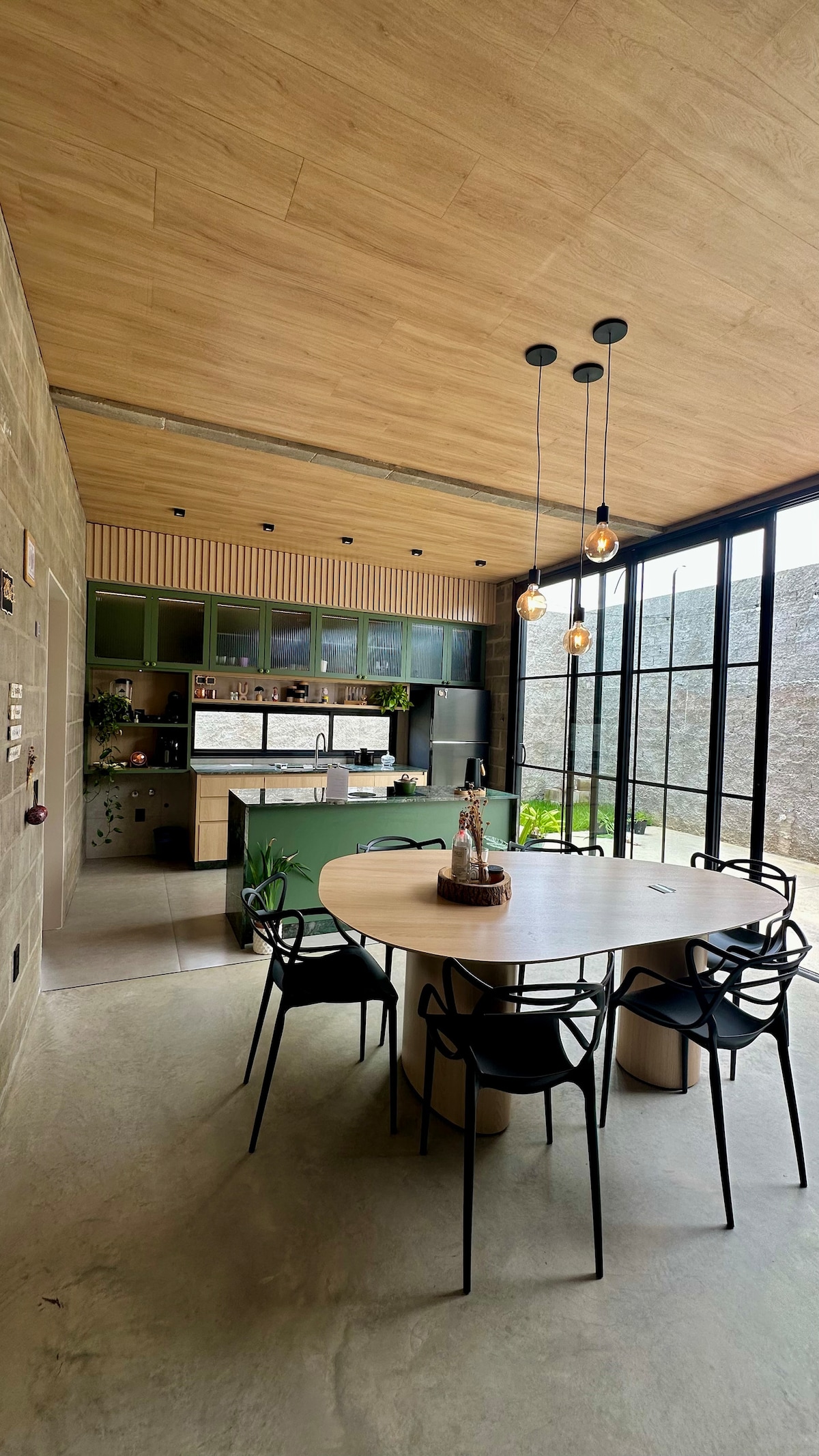 Hospede-se em uma casa com estética industrial autêntica, com bloco aparente, forro de madeira e piso de concreto polido. Um espaço confortável, aconchegante e cheio de personalidade. Localizada em bairro tranquilo e seguro, perto do centro. Destaque para a banheira estilo spa, perfeita para relaxar e viver momentos especiais. Ideal para casais e para quem ama arquitetura, design e boas experiências.