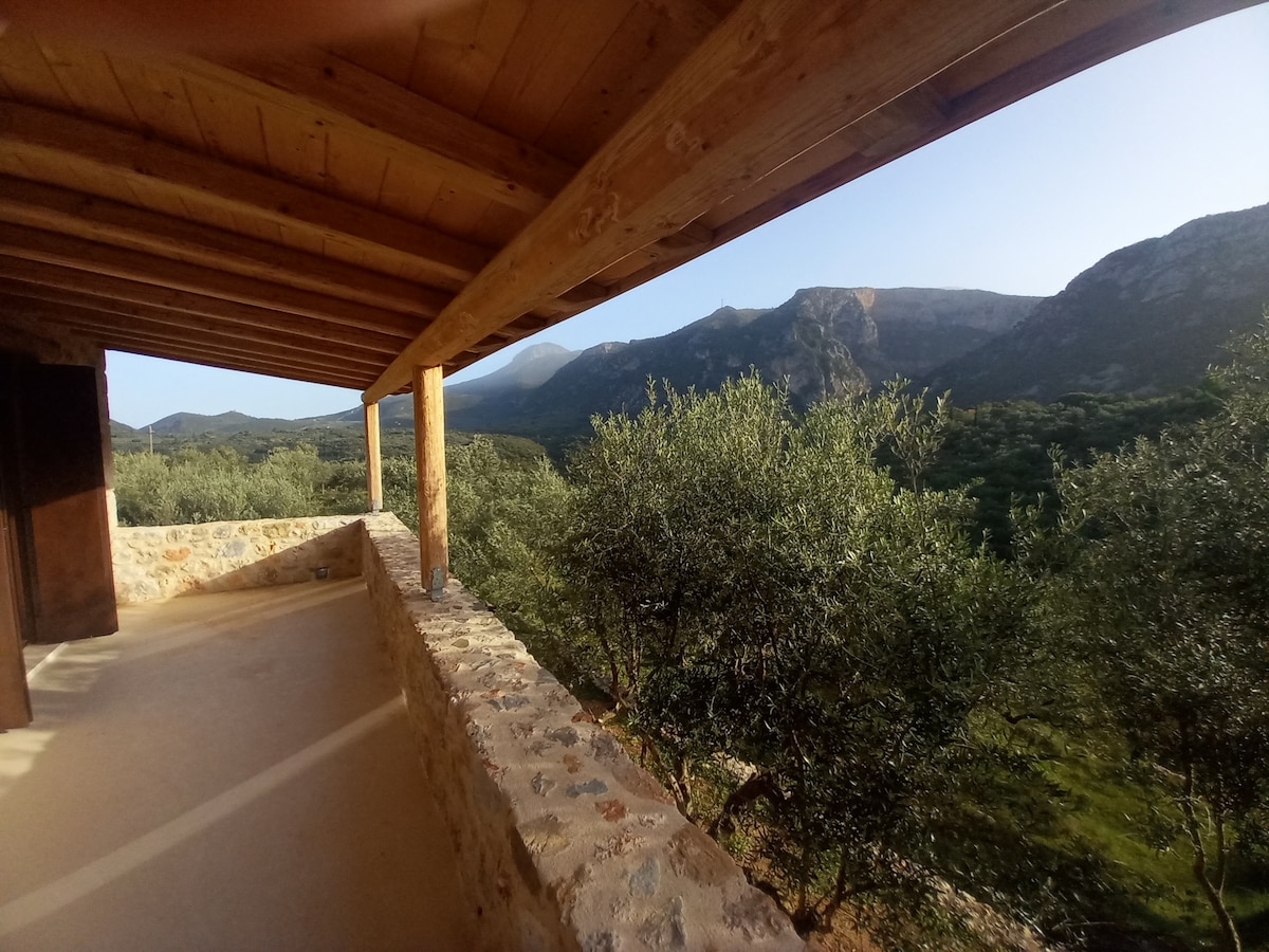 "Fantastic view" At the foot of Mount Taygetos, at an altitude of 650 meters, lies the traditional village of Tseria. At the beginning of the village with direct access by car, a fully renovated house, awaits you to enjoy from the balcony the stunning views of the Messinian bay, the magnificent sunsets, forget the rhythms of the city and enjoy the tranquility and the climate area.