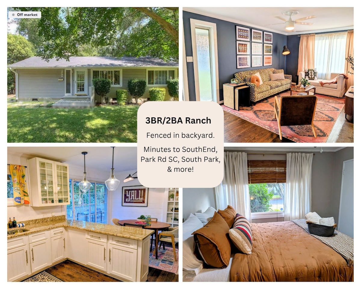 The home is 12 minutes from South End and Uptown CLT. 10 minutes to Carowinds Amusement Park. Less than 15 minutes from Charlotte Douglas International Airport and 15 minutes from Bank of America Stadium! Spectrum WiFi, 55" smart TV, private driveway with room for 3-4 vehicles along with street parking. Grocery stores, shopping, restaurants and a light rail station all within walking distance (0.4 miles or less).