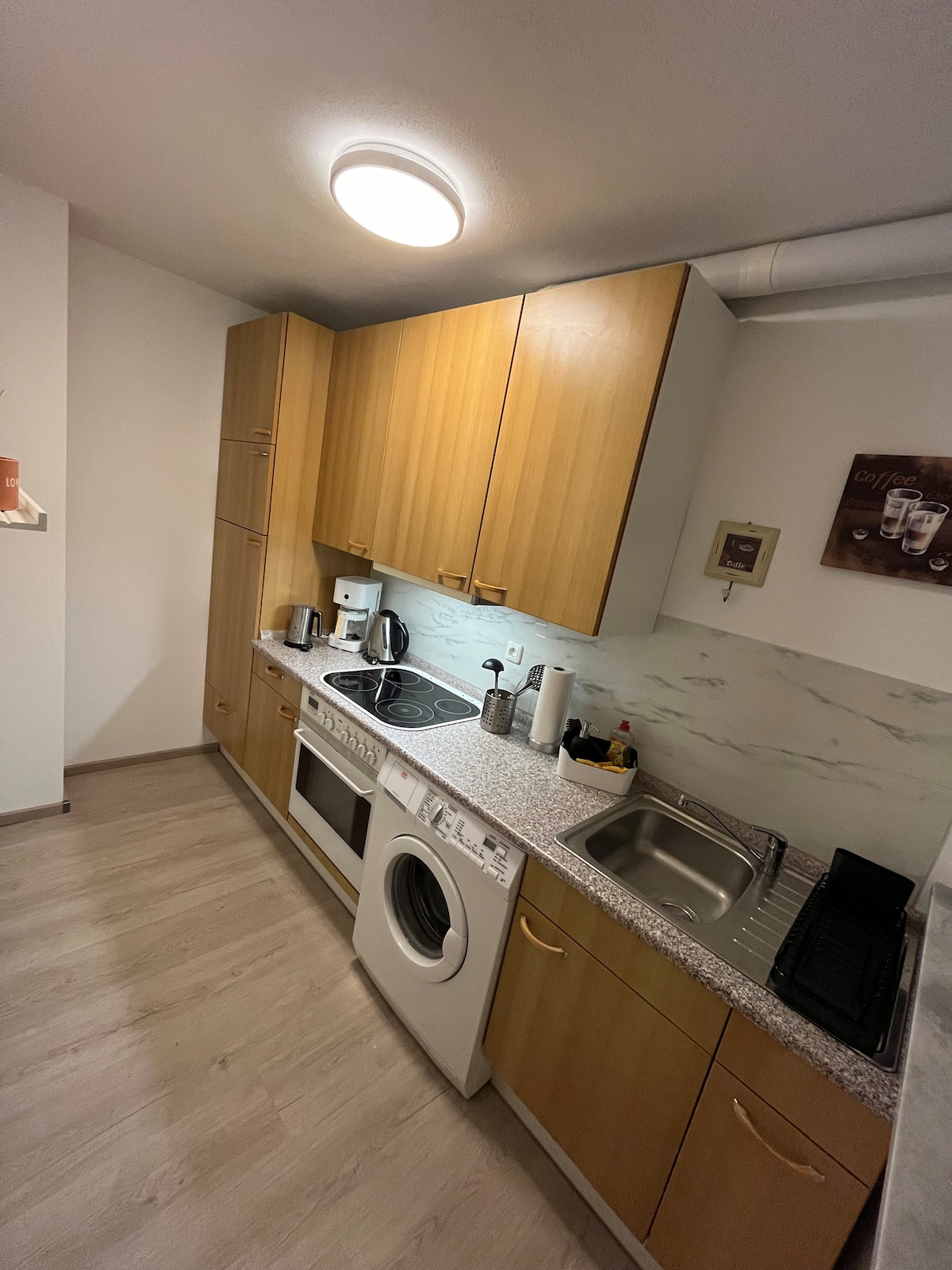 Das Dachappartement ist ideal für Gäste, die auch für längere Zeit eine einfache, praktische und günstige Wohnung suchen. Die Wohnung ist 23 Quadratmeter groß. Sie ist komplett eingerichtet, hat einen Glasfaser-Internetanschluss und einen Fernseher. Die Wohnung im zweiten Obergeschoss befindet sich in einem Mehrfamilienhaus mit zwölf Wohnungen (Baujahr 1958) mit einem entsprechend einfachem Umfeld.