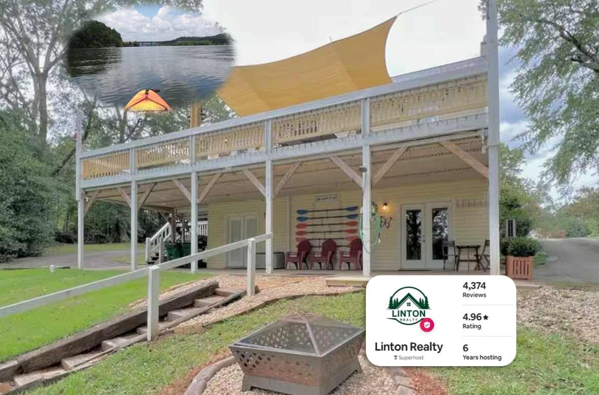 Fun home with plenty of space for friends and families. One bedroom & shared full bath downstairs, two bedrooms & full bath upstairs. AMAZING Bunk/Game room with 65" TV, foosball and two sets of bunk beds. Outdoor firepit, cornhole and disc golf. Lake access across the street for fishing & swimming. Boat launch less than 0.5 miles up road. 10 mins to Toccoa.