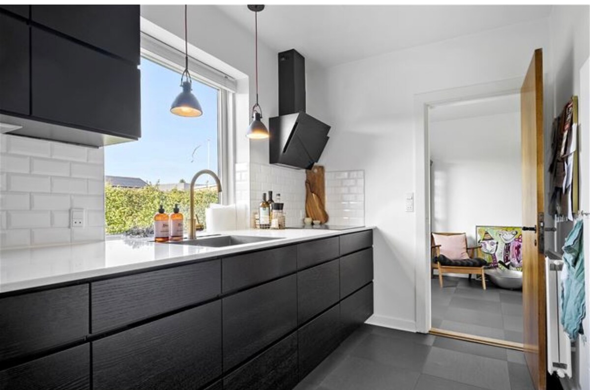 Enjoy stunning views of Kolding Fjord from this bright 110 m² first-floor apartment in a charming white patrician villa. Features 2 double bedrooms, a large bathroom, cozy living room, and a fully equipped kitchen-dining area with access to a private terrace with sun loungers. We live quietly on the ground floor and respect your privacy.