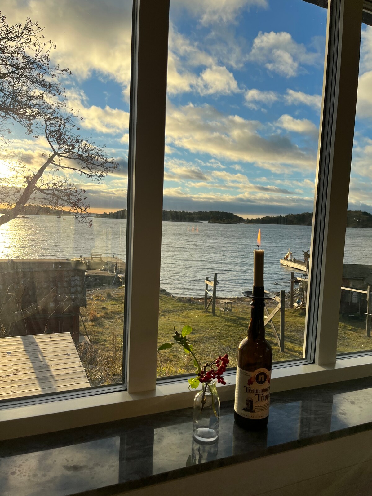 A property with a fantastic location by the sea only 10 meters from the water. Overlooking the Stockholm inlet, you can see boats and ships passing outside the house, which has a terrace towards the sea. The cottage is only 12 km from central Stockholm and is separate from the main building where we live. Nature reserves for walking and running are a stone's throw from the cottage. The wood-fired hot tub that is on our jetty can be rented for an evening. There is a possibility to rent sea kayaks (2).