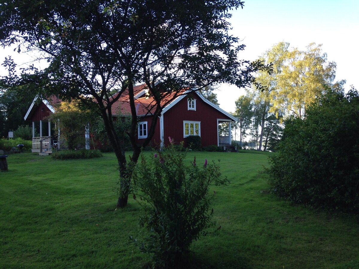 Stuga utanför Jönköping vid sjö.