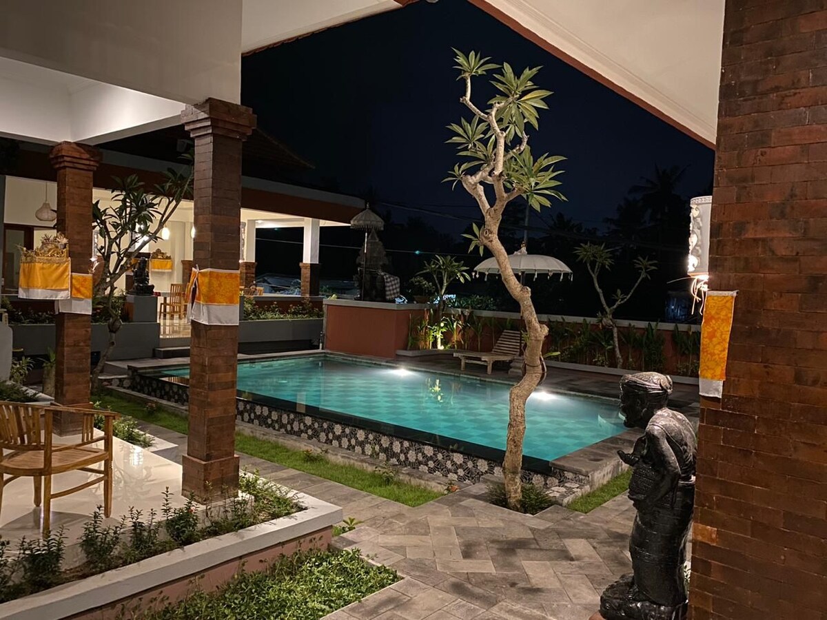 Are you traveling with group or family? We can accommodate up to 14 guests. If you are looking for a place far from hustle and bustle but close to Ubud, then our villa is for you! Tegenungan waterfall is only 10 minutes, Kemenuh Butterfly Park only 5 minutes, Ubud market is around 20 minutes. The home of Bali United Kapten I Wayan Dipta Stadium only 15 minutes. Provide: -Private pool -Free WiFi -Private bathroom with a hot water shower -Pool view room with AC -Friendly and HELPFUL owner/staffs