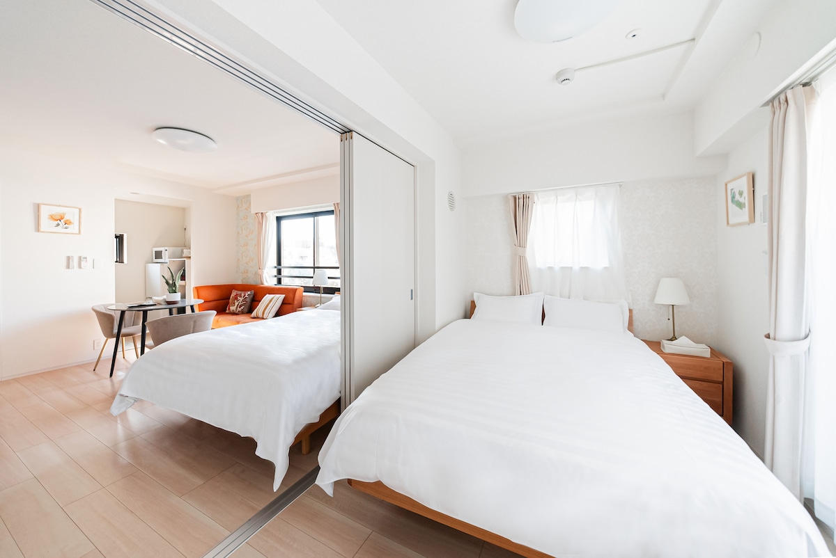 Walk to JR | 21㎡ Double Room w/ Bathtub & Kitchen