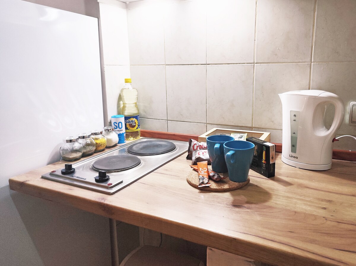 Enjoy a comfortable apartment located on the first floor of a family house. The apartment offers everything you need for a pleasant stay — a spacious kitchen with a bar counter, as well as a work desk ideal for remote work. Guests can relax on two terraces overlooking the courtyard. You’ll also have access to free on-site parking with an EV charger, making it a great choice for travelers arriving by car. The apartment is quiet, bright, and comfortable — ideal for business or leisure travelers.