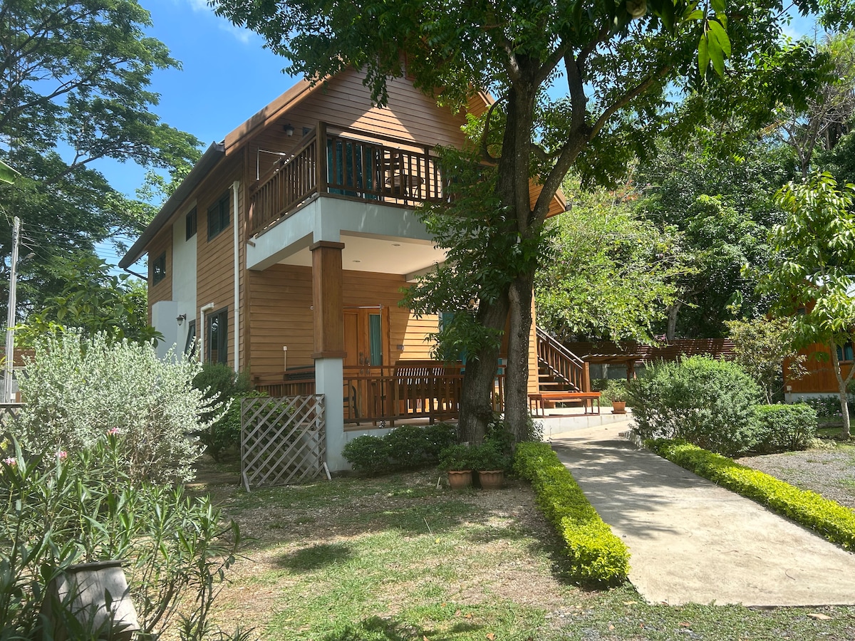 Discover Your Tranquil Retreat in Chiang Mai Nestled amidst lush teak trees, our guesthouse villa offers a serene escape from the city's hustle & bustle. Wake up to nature's sounds and panoramic pond views. Enjoy the sparkling garden pool, perfect for a refreshing dip or sun lounging. All rooms are air-conditioned for your comfort. Come and experience the perfect blend of peaceful countryside living with easy access to the cultural treasures of Chiang Mai just 20-30 minutes away.