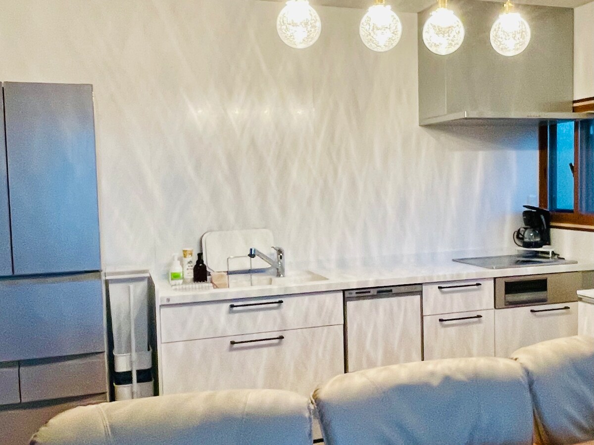 This accommodation is in front of Blanche Takayama Ski Resort at an altitude of 1500 m. Enjoy a comfortable and open space in a spacious, open-air accommodation. It is cool in summer, and even without air conditioning, it is a great summer resort. The entire building can accommodate up to 15 people. In summer, there is a covered barbecue area. There is also a terrace where you can relax. There are 6 bedrooms. There are 8 beds and the rest are futons. You can use the commercial kitchen. There is a microwave, toaster, coffee maker, etc. The bath is a circulating type and can be used 24 hours a day. There is a fireplace in the middle of the living room. You can use it if you bring firewood.
