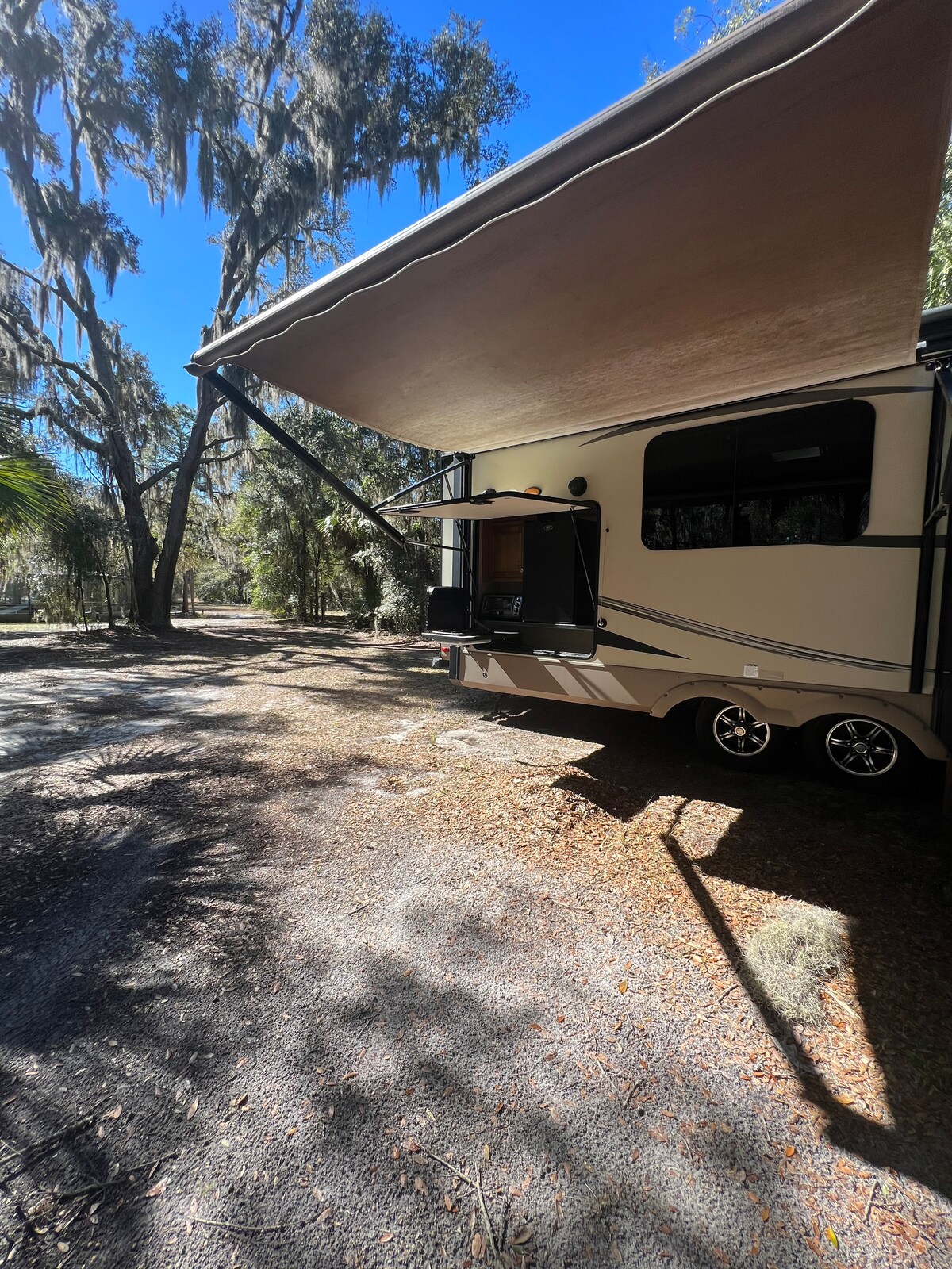 Welcome to Paula the Puma! Get out the hustle and bustle and come to our forest getaway. Pack your bags, No RV experience needed. Everything is set up and ready for your vaca. Pools, Hot tub ,Rec Room, Wifi, fishing pier & ramp,hiking, Across street to Salt Springs, 15 min to Silver Glen, 20 minutes silver springs,20 min to Juniper Springs. There is a one time $35 check-in fee for 1 vehicle. $15 for additional vehicles. Golf carts no longer available after April 30th, 2026.