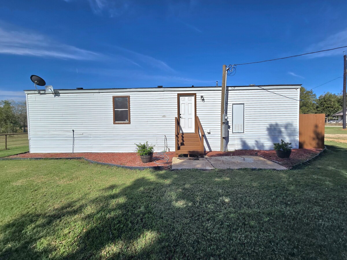 Relax at this peaceful home. The Sweeny house is conveniently located 2 minutes from the Sweeny Community Hospital, 5 minutes from fishing in the San Bernard River, 10 minutes from Chevron Phillips, and 35 minutes from Surfside Beach. This house has many features including a place to park your RV with an outside plug, a full kitchen with new appliances, 2 TV's, computer desk, washer dryer, central AC/Heat, an electric fireplace, and a beautiful screened in front porch.