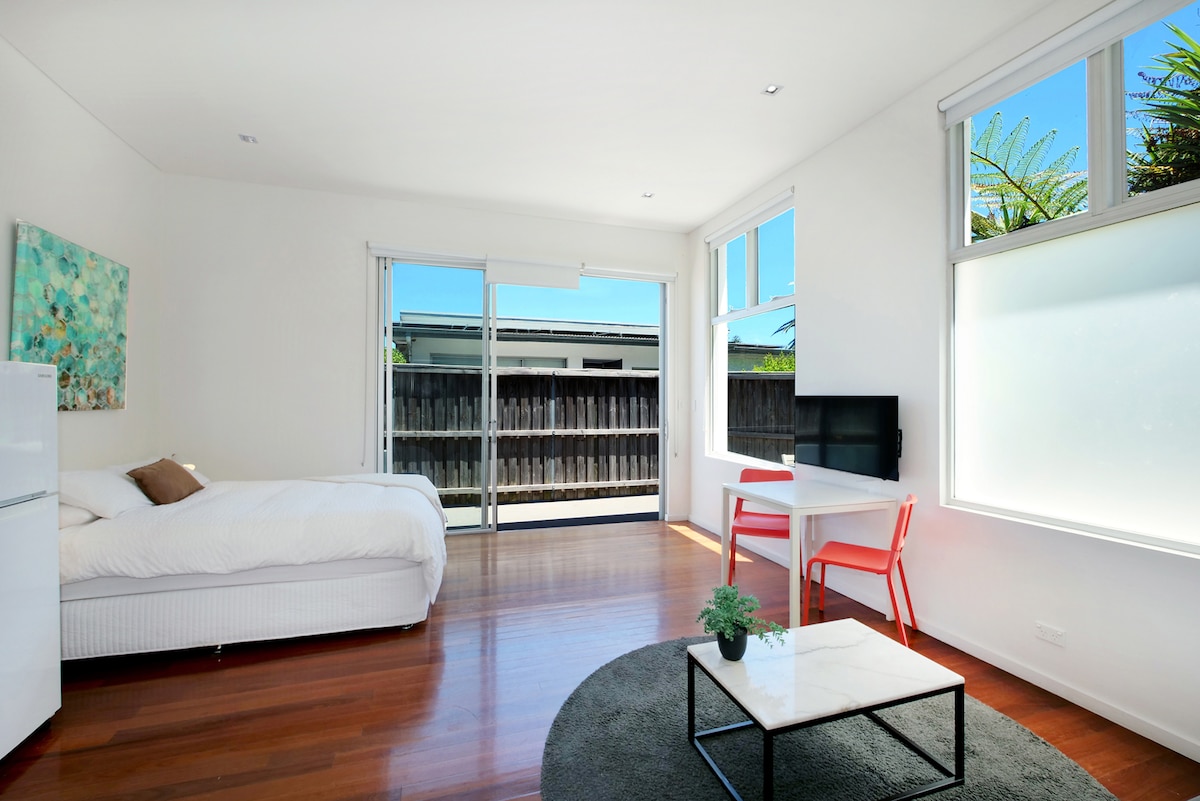 ***Best value, service and stay experience*** Fast internet. New covered patio from end of Jan! Centrally located, our guest house has a good size bedroom with a comfortable bed, a separate, fully equipped kitchen and a bathroom. The studio is a contemporary place with everything you need . Location is fantastic - take a walk anywhere: to mall, shops, beach or a train. Experience life as a local! Enjoy Netflix or just listen to birds. Stay longer and save even more! Plenty street parking ,safe!