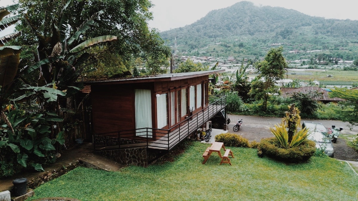 Welcome to The Lookout Cabin, your serene and sustainable retreat in the heart of Bali's untouched natural beauty. Nestled on a hill beneath the awe-inspiring Mount Batukaru, our handbuilt A-frame cabin is a labor of love, crafted from recycled wood, and designed to offer you an unforgettable escape. Enjoy a free Morning Rice Field Walk, a peaceful start to your day surrounded by nature. Witness the traditional making of palm sugar, a rare cultural insight (by req). Plus, a yoga mat is provide