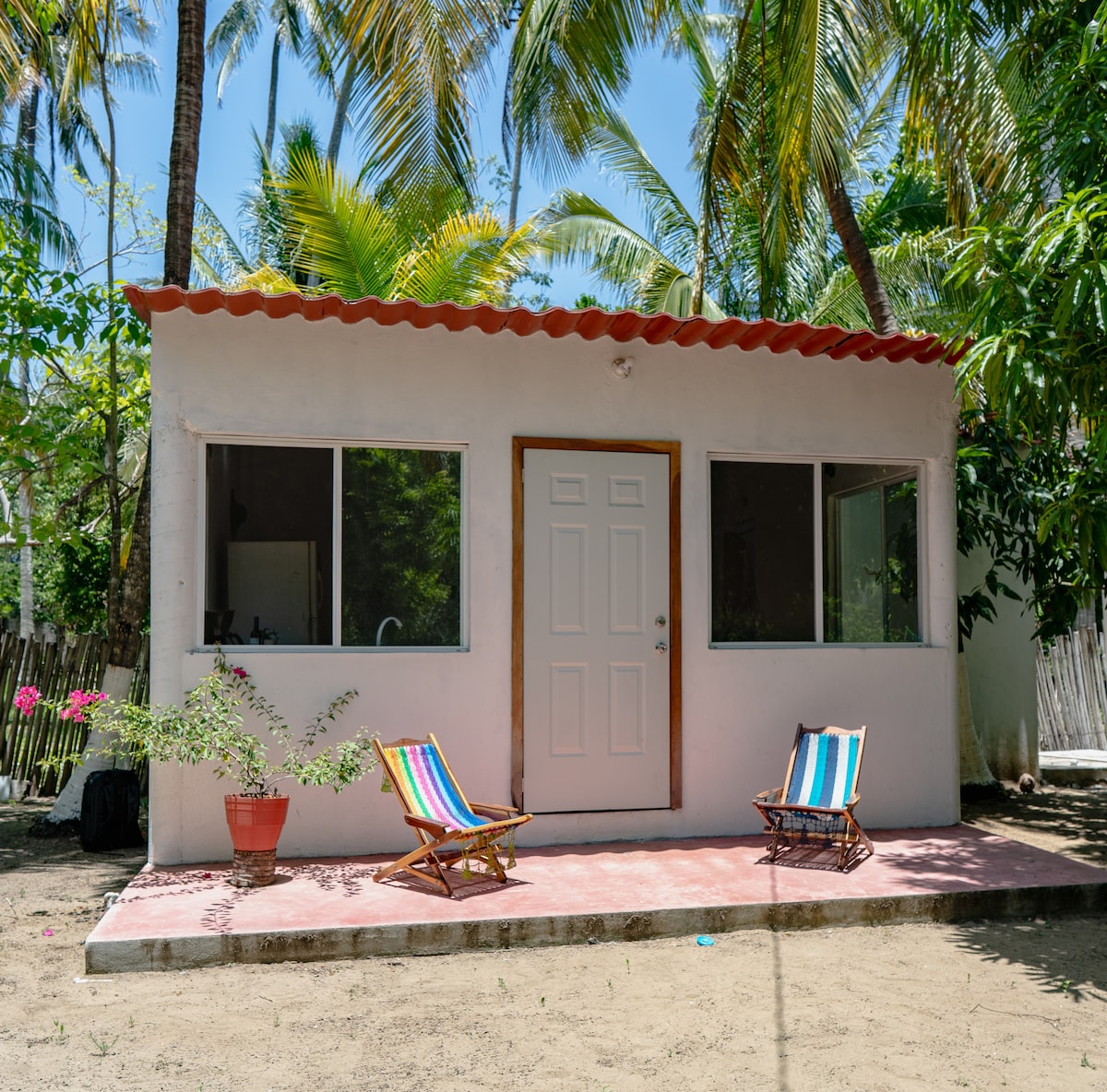 Descubre la magia del descanso cerca del mar sumérgete en la tranquilidad de nuestra acogedora cabaña de madera, escondida entre palmeras danzantes y a solo unos pasos del mar. Este rincón encantador combina el confort rústico con el romance tropical, ideal para escapadas familiares, retiros creativos o momentos de paz bajo cielos que se tiñen de naranja al caer el sol. Ven y vive la experiencia de despertar entre árboles, caminar descalzo por la arena tibia entre los árboles que nos rodean.