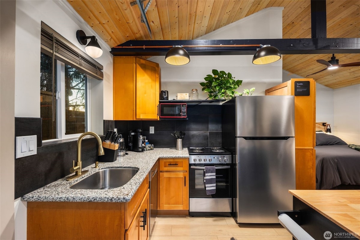 Welcome to Washington’s very own mini Tulum! Inspired by the relaxed, bohemian vibes of our favorite destination in Mexico, this private studio is perfect for a one-night getaway, extended stay, business trip, or special occasion. Conveniently located near the Proctor District and 6th Ave, you’ll have your own parking space, a private covered courtyard, a fully equipped kitchen, a luxury bathroom, electric Fireplace and in-unit laundry. Created with intention and care.