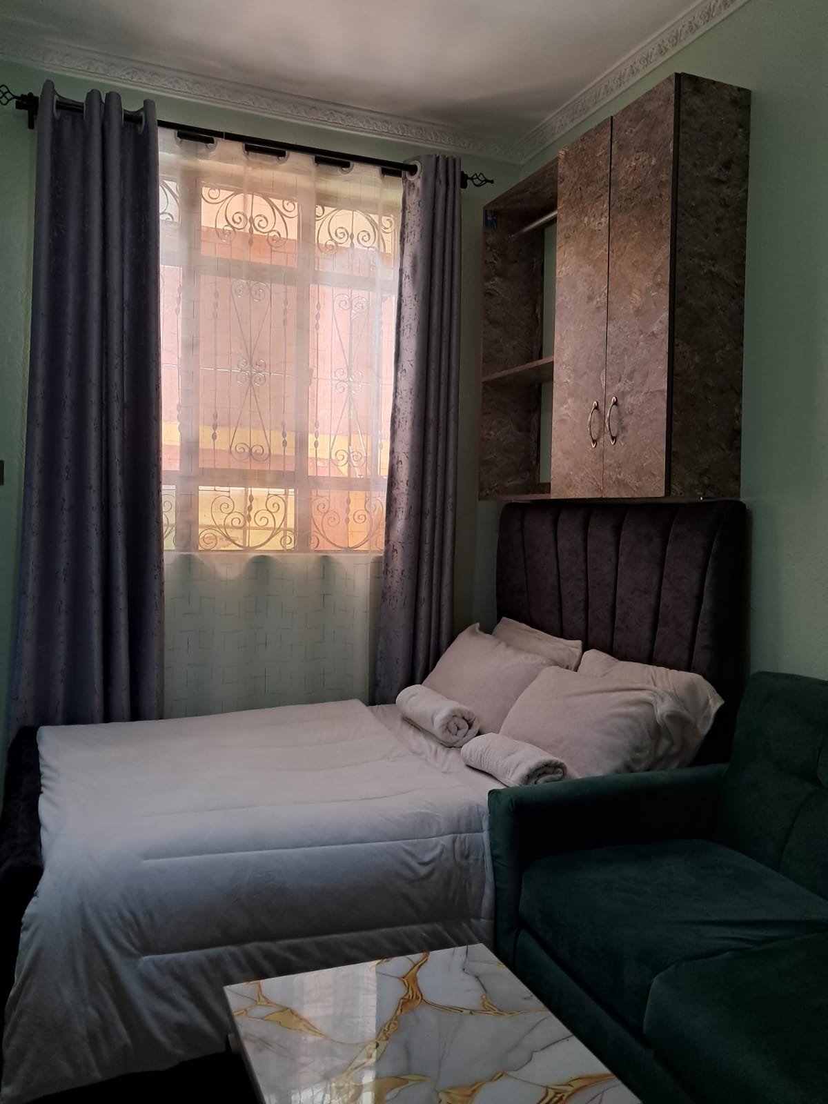 A clean studio apartment with Fast internet located at Voi Caltex area for easy access to the Tsavo,Voi CBD, 24/7 convenient stores, filling stations, SGR and popular bus services. There’s an in apartment hotel, kiosk and butchery on the ground floor. Java , Artcaffe and chicken inn are a 5 min walk a way. There’s also a fully equipped kitchen.All beddings are waterproof protected; these protectors , covers and all throws are changed with every new visit for proper hygiene.