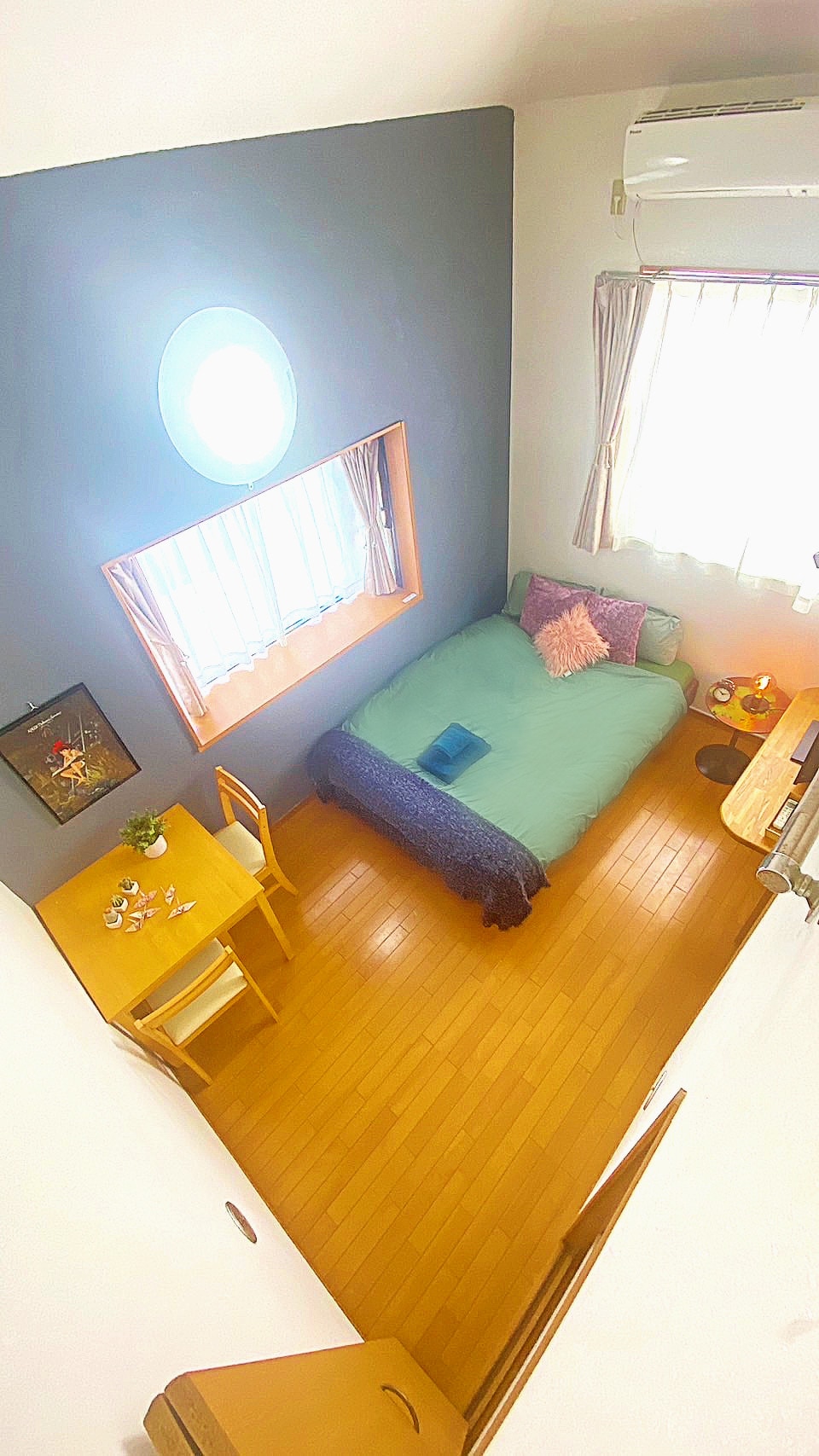 Quiet and cozy street, JR Shisui Station is very close, 2 stops directly to the airport; outlets, 2020 Ruju Hot Spring, leisure shopping one stop directly. We rent out Room 201, the entire private bungalow with a loft, where you can enjoy the entire comfortable private space with your family, friends... The outdoor stairs from the first floor of the house leads up to room 201, the keypad is hanging on the door, you can enter after taking the key. Room 201 has a standard 1.5m double tatami bed in the loft, and you need to climb a simple wooden ladder to reach the loft. The wooden ladder is a bit steep, guests who are not comfortable with it, please contact the host in advance, we will prepare the sofa bed in the living room for you. Please note that⚠️ if you need to use the 1.4m sofa bed in the living room, please contact us in advance at the time of booking and we will prepare the necessary bedding for the sofa bed. Shopping is very convenient near the supermarket, restaurant, 100 yen shop, and convenience store. Free Narita Airport pick up for guests staying 15 days or more ~ (If you need to be taken to Narita Airport or elsewhere, we will charge a service fee of 5,000 and above, please discuss the details with me ~)
