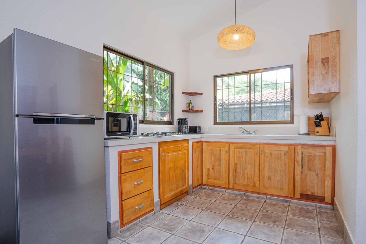 Immersed in nature, this is a brand new stylish and modern unit. Detailed with an exclusive rustic touch, we offer a unique dine and wine experience in our magical treetop terrace. Located downtown, yet in a quiet neighborhood, you will find yourself 5 minutes away (walking distance) from the pristine beach of Tamarindo. 2BR / 2BA, AC, fully equipped kitchen, terrace, outdoor treetop dining experience, free parking on premises. Take it easy at this unique and tranquil getaway.