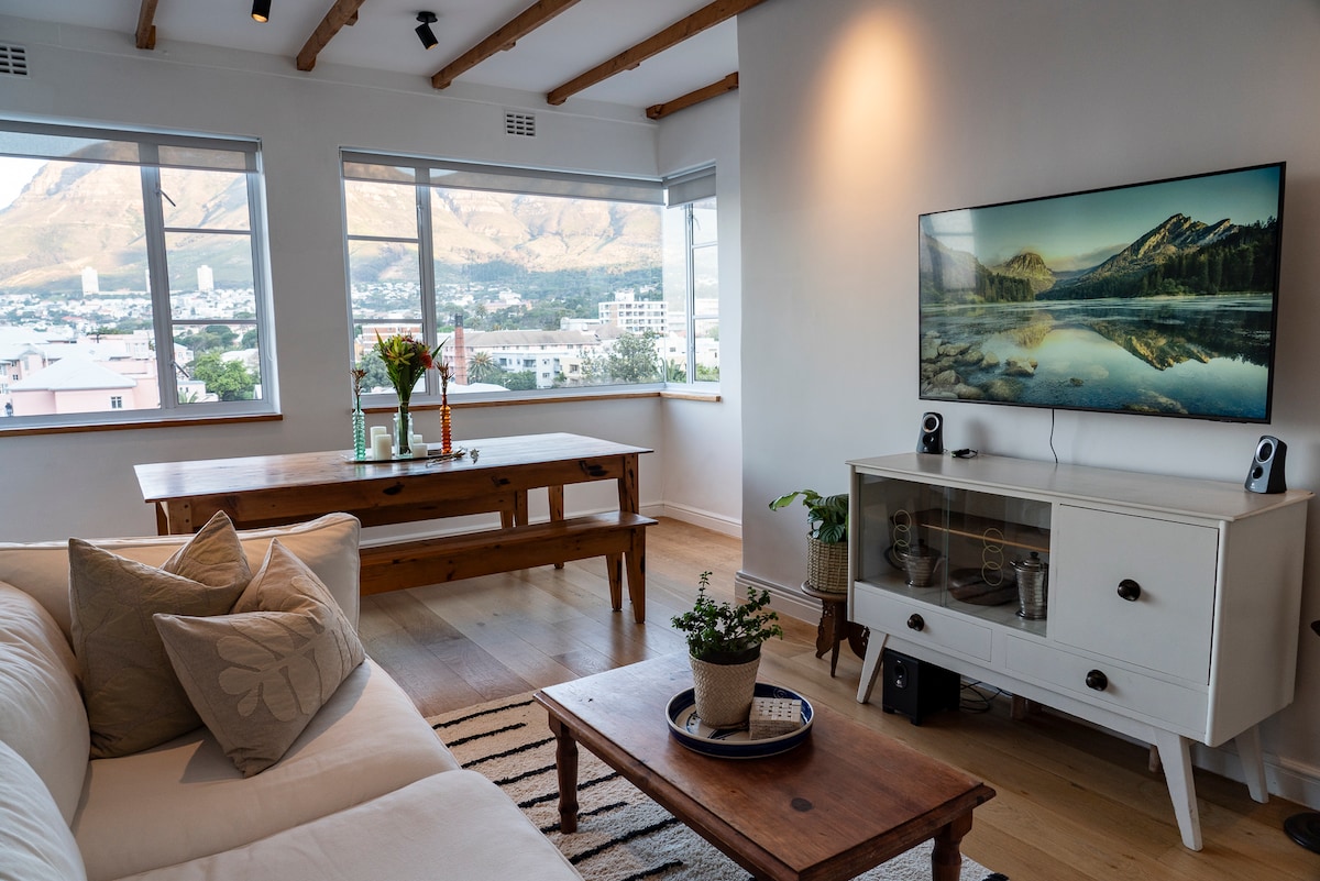 *Featured in Real Simple and Home Magazines* Back on Airbnb after a 4-month full renovation. Beautifully & eclectically decorated, spacious & immaculate apartment in one of Cape Town's most sought-after areas. Fully-furnished & secure with all amenities to ensure a comfortable stay. Sweeping city & waterfront views. Close to major attractions: 2-min walk to Kloof St (popular bars, cafes and restaurants); 5-min drive to Camps Bay & Clifton beaches; 3-min drive to Lions Head & Table Mountain.