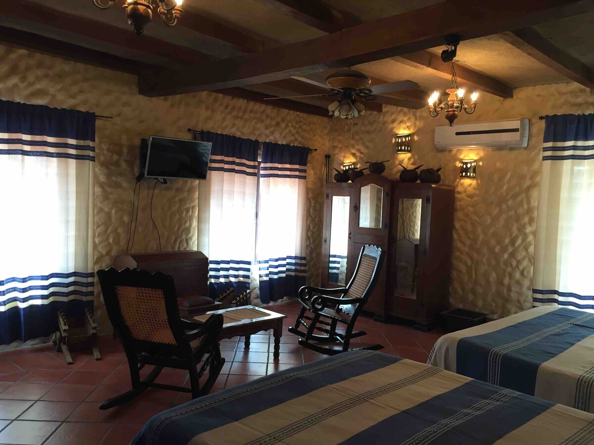 It is an upper floor room with balconies in the rooms. It has a good view of the mountains and very good lighting. The rooms have a king size bed. In total there are 3 king size beds. Your television, your fan. The apartment has its integral kitchen, minibar, grill, coffee maker, blender, dishes for cooking. We are on the national road and 5 minutes by car from the surrealist garden. **** We do not accept pets.