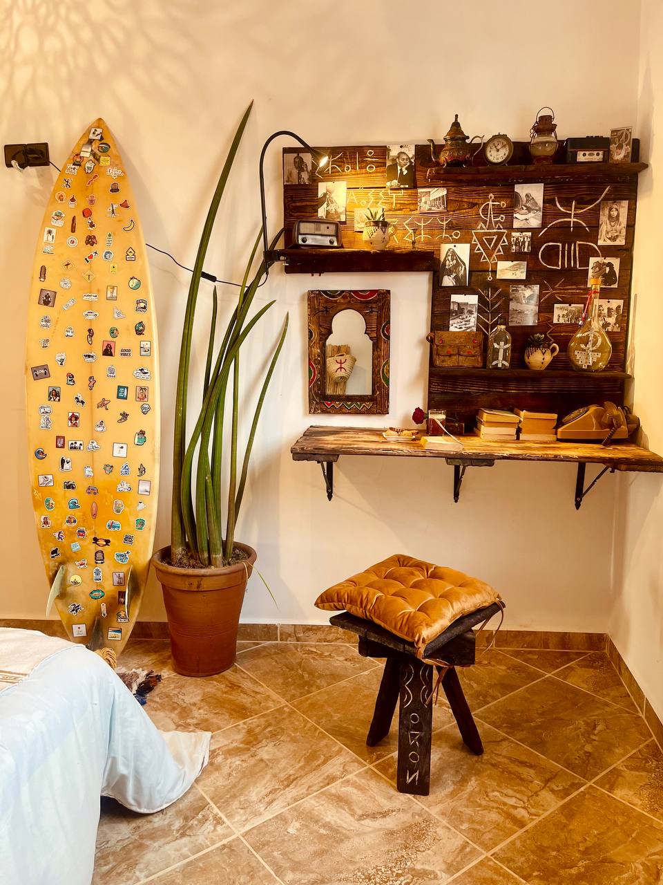 We are very pleased to offer you an apartment that represents our Berber culture with a little modernity, a feeling of a thousand and one nights. Enjoy an unforgettable stay in our very welcoming apartment and our superb terrace with an excellent view of the ocean, especially on the banana point surf spot in the Tamraght mountains.