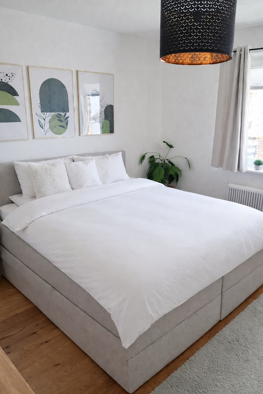 Our guest house "Burglodge Fischerkeusche" for up to 35 guests: The spacious deluxe apartment Dietrich | 70 m² | offers you plenty of space to enjoy your vacation. Starting with a large entrance area, the open space with fully equipped kitchen, dining and living area is a feast for the eyes. The two separate bedrooms with double beds (one of which can be separated) are bright and cozy.