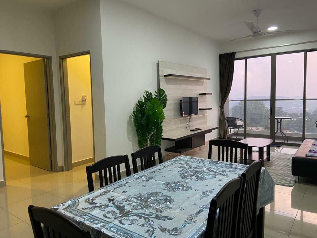 Facing greenery at highest floor in Brinchang town, Emeralds Avenue. 4 queens + 2 single beds for 10 pax & 3 baths. 3 car park near lift. Senior friendly. Fully fitted kitchen with Coway water purifier. Behind Centrum Mall. walking distance to more than 100 eateries, Burger King, KFC, Billion supermarket, wet& Cactus Valley. Free Unify & Netflix. 55” smart TV. We provide mahjong & carrom tables For 20 pax you can book connecting unit. EA922-Link https://www.airbnb.com/h/josplaceemera ma