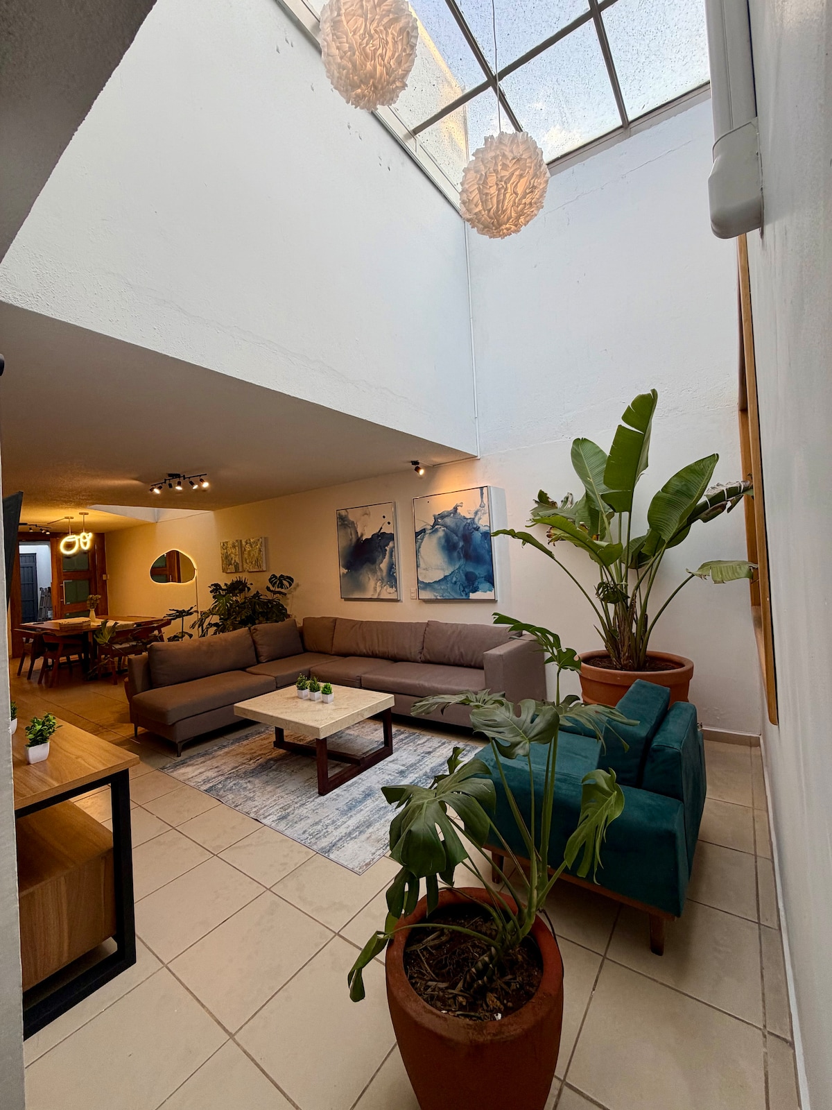 Enjoy this beautiful space that has a mix between an old adobe construction and a modern industrial style. Full of art, good vibes, and a great kitchen. It has spaces to work and also to enjoy its green areas. It has a central location, close to places to eat and a supermarket. Relatively close to Camecuaro, Noviciado La Purísima, Guadalupe shrine, and Plaza de Jacona.