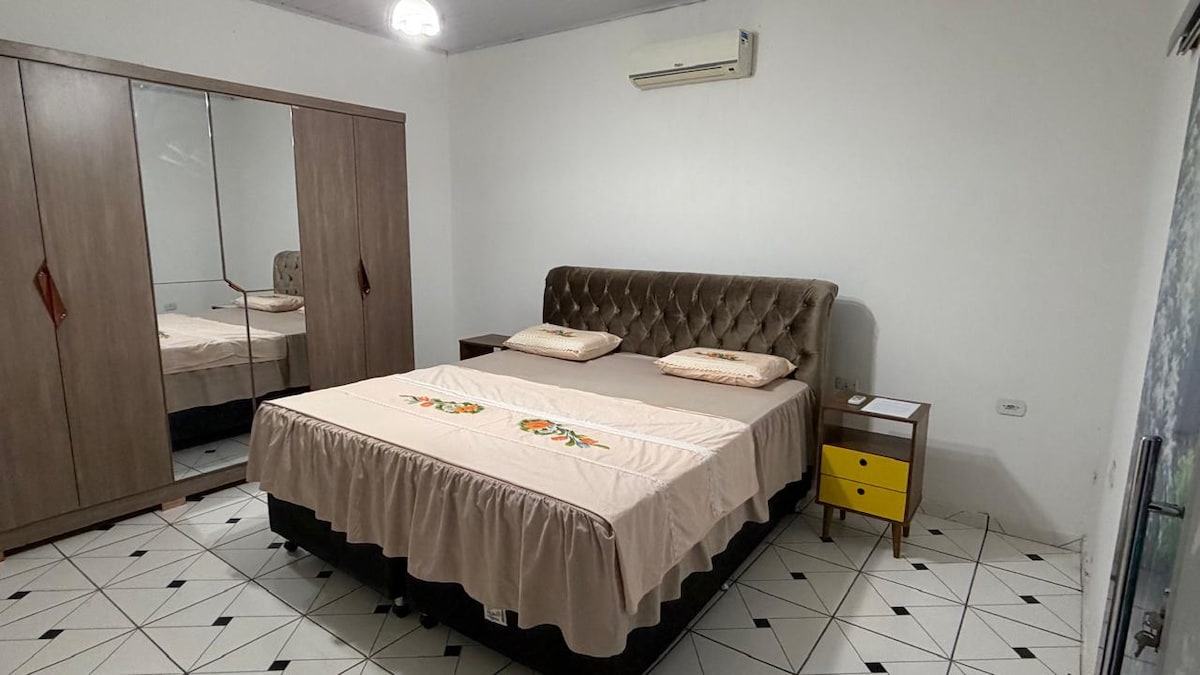 Have fun with the whole family at this simple but very cozy place with plenty of room for fun, safety and tranquility. Grocery store in front, less than 9 km from Balneário 7 Queda. The space is perfect for couples, families (with kids). Appliances, two air-conditioners, barbecue and wood stove in the gourmet area.