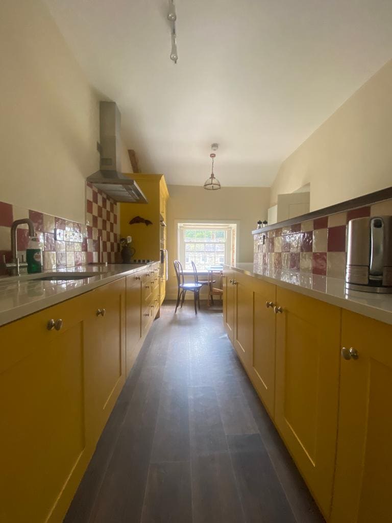 The Clonmellon Lodge is an 18th c. gothic mini castle recently restored, newly refurbished bathrooms and kitchen, all in one floor, with easy access to the grounds of Killua Castle. The Lodge can fit 5 people comfortably. There are 2 bedrooms with ensuite bathrooms. The first one with an ( American) Queen size bed, and the second with a double size bed. There is an office with a daybed that can sleep an small adult comfortably, and it has a full bathroom next to it.